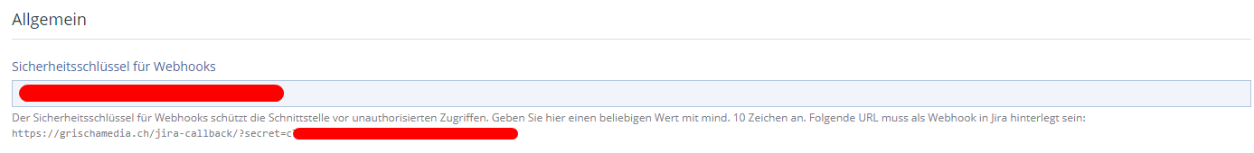 Im Tab Verbindung finden Sie am Seitenende den Titel Allgemein. Darunter ist der Sicherheitsschlüssel und die Callback URL für den Webhook hinterlegt. Kopieren Sie sich die Callback URL in die Zwischenablage.