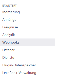 Auf der Linken Seite finden Sie im unteren Teil den Menüpunkt Webhooks