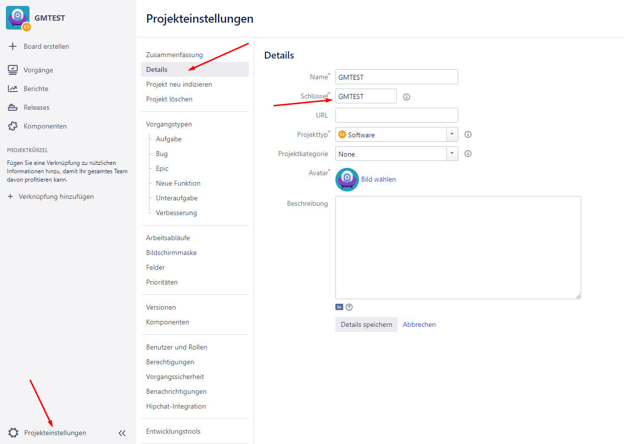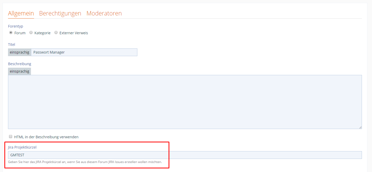 Unterhalb der Forenbeschreibung, können Sie das Jira Projektkürzel angeben.