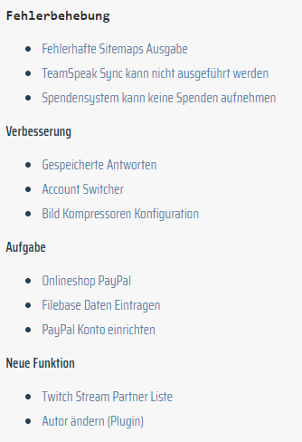 [changelog='PROJEKTKÜRZEL','VERSION'][/changelog] Beispiel: [changelog='GMTEST','1.1.4'][/changelog]