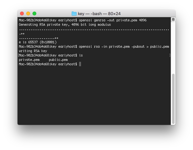 Die Datei private.pem beinhaltet Ihren privaten Schlüssen. Die Datei public.pem den dazugehörigen öffentlichen Schlüssel.