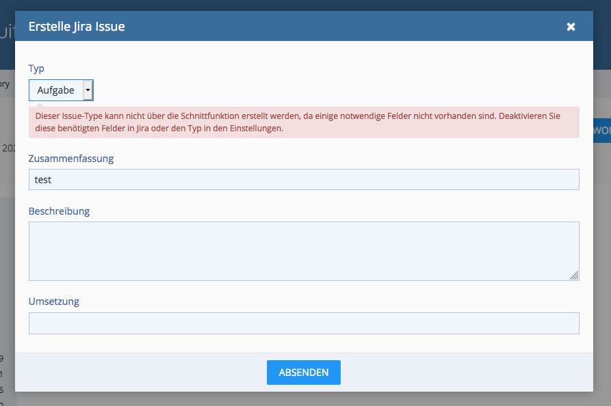 Für die Funktionsweise ist wichtig, dass Sie auch in Jira folgende Felder direkt beim Erstellen setzen können: