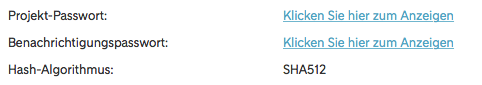 Auf der Detailseite finden Sie die jeweiligen Passwörter und den Hash-Algorithmus.