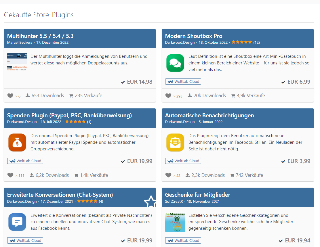 Woltlab Suite 5.5. mit Blog, Gallery und Kalender + verschiedene Plugins per Accountübergabe (Name bei Woltlab ist Marlamee)