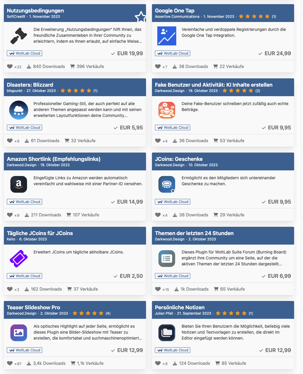 Ich biete Euch einen WoltLab Account mit zahlreichen Lizenzen zur Übernahme an: