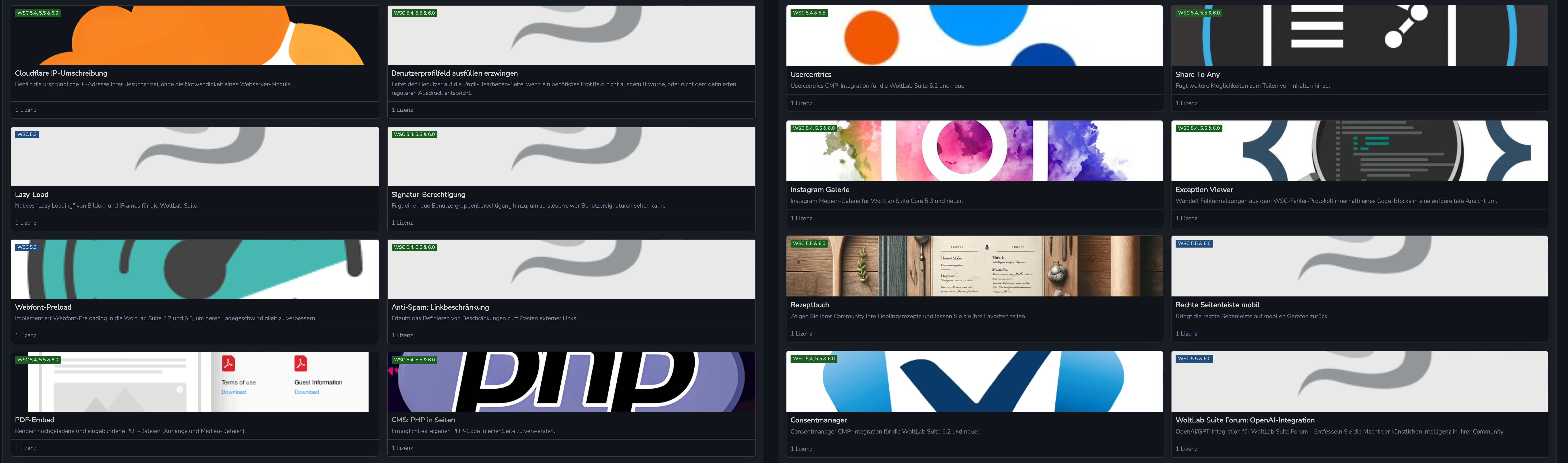 Hi zusammen, aufgrund persönlicher und zeitlichen Gründen muss ich mein Projekt aufgeben. Daher biete ich meine WoltLab Suite 6.0 Lizenz für das Forum zusammen mit allen Plugins, die ich vom WoltLab Store und externen Stores erworben habe, zum Verkauf an. Die Übersicht aller Plugins können im Anhang entnommen werden.