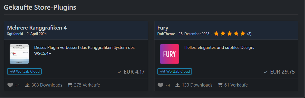 Die WoltLab Suite 6.0 Forum Lizenz ist noch bis zum 5. Mai 2025 gültig. Die Lizenz wird an ein gewünschtes Konto übertragen. Die Kosten hierfür sind im Preis inklusive.