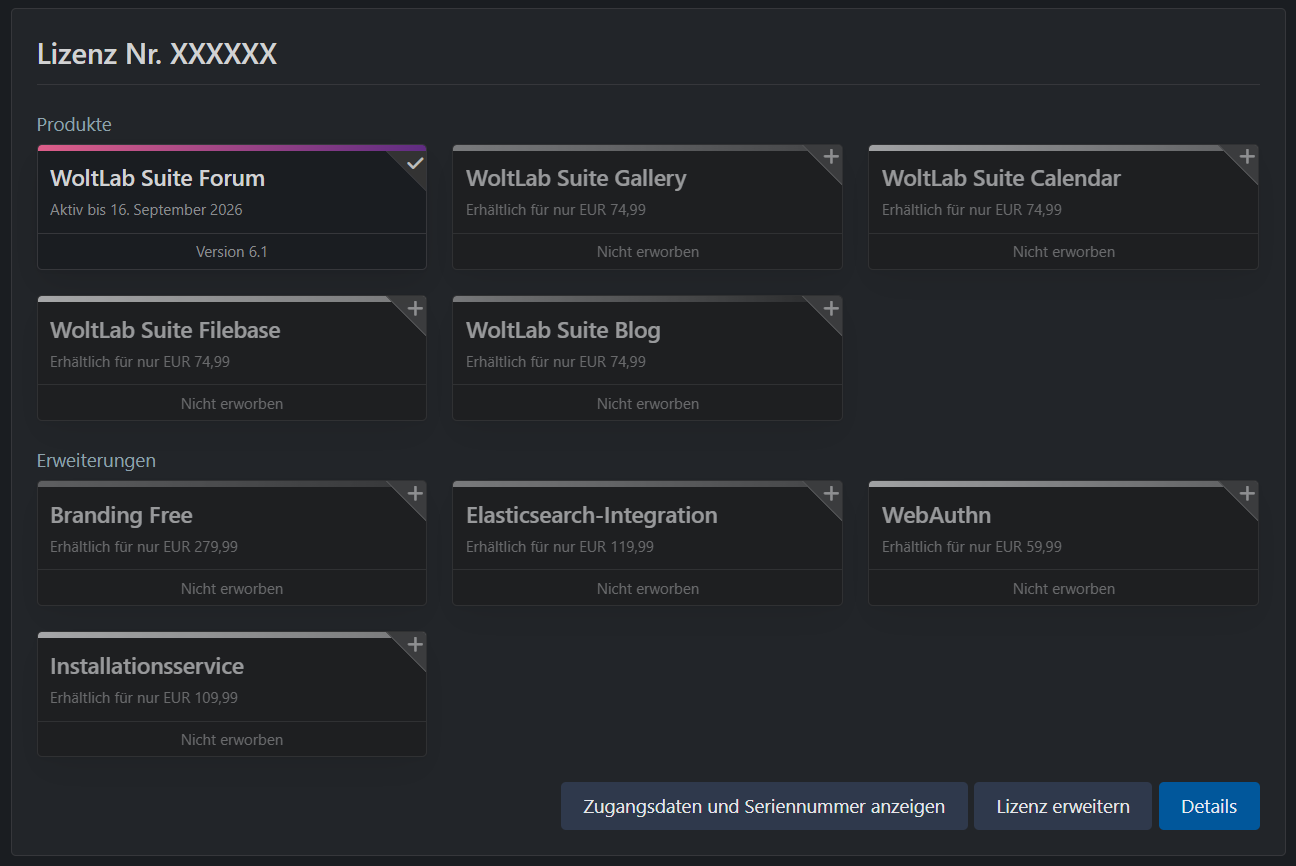 Ich verkaufe eine WoltLab Suite Forum-Lizenz, die am 16.09.2025 erworben wurde. Sie ist also noch bis 16.09.2026 gültig.