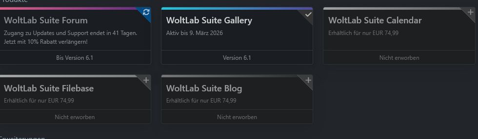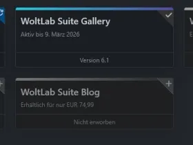 Die Lizenz ist bis November 2025 (Forum) bzw. März 2026 (Galerie) aktiv und erhält bis dahin auch alle neuen Versionen die bis zu diesem Datum erscheinen.