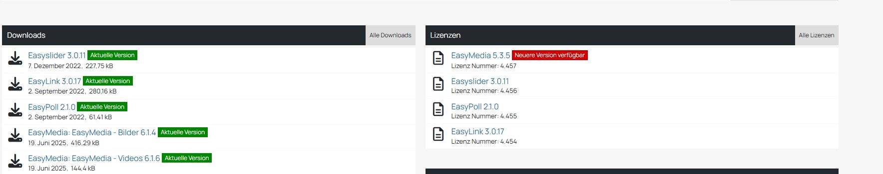 Moin zusammen,ich verkaufe folgende Lizenzen von wbb-elite.dePreis: VB Lizenzdaten Enthaltene Produkte WoltLab Suite Gallery WSC (WoltLab Suite Core) Generation WSC 5.3 VB