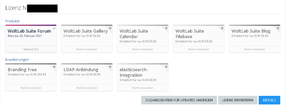 ich biete eine stink-normale WoltLab Suite Forum 5.2 - Lizenz, da ich mit meiner