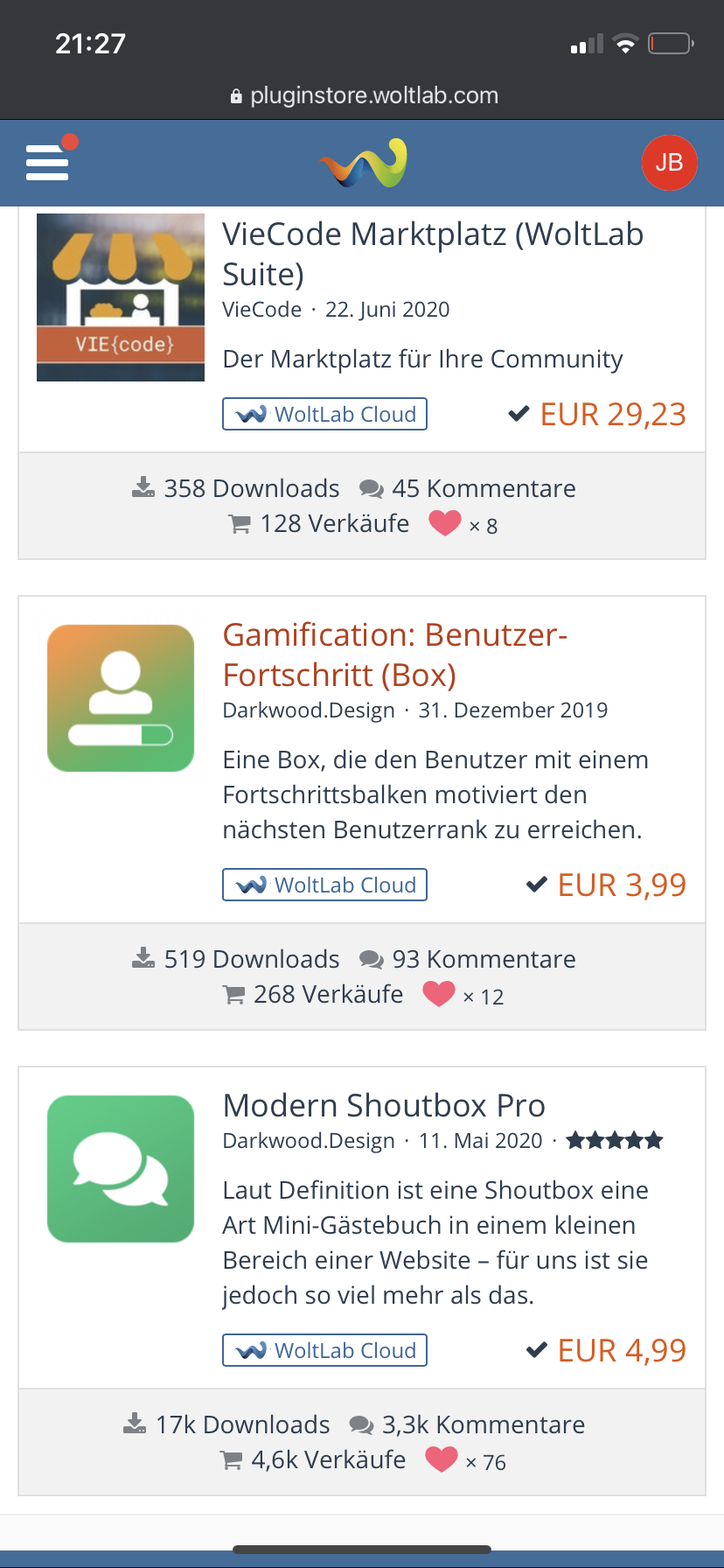 Verkaufe meine Forum und Kalender Lizenz inklusive 3 Plugins. Siehe Bilder: Lizenzdaten Enthaltene Produkte WoltLab Burning BoardWoltLab Suite Calender WSC (WoltLab Suite Core) Generation WSC 3.1 75€ vhb