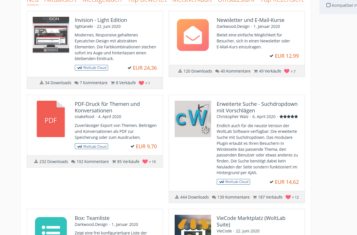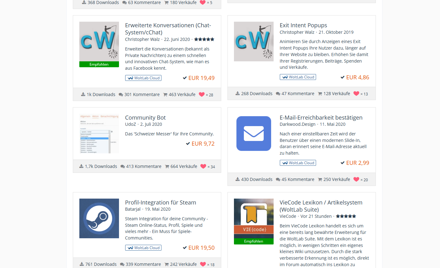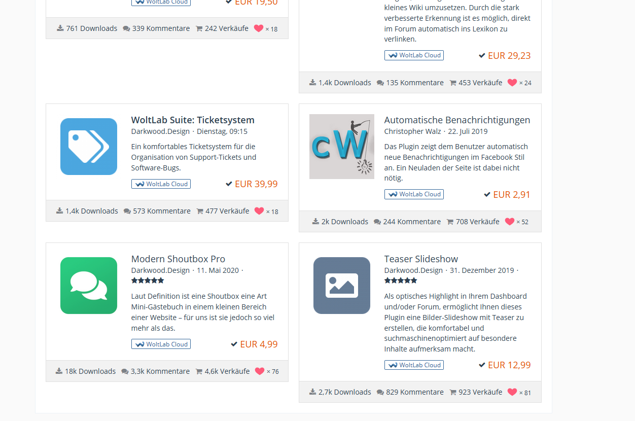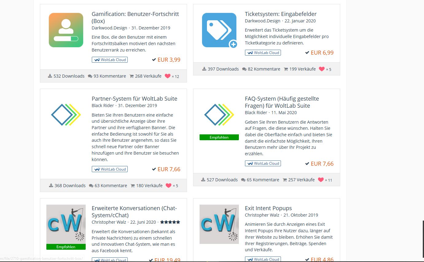 Verkaufe meine ganzen Lizenz, da ich kaum Zeit für mein Hobby habe. Lizenzdaten Enthaltene Produkte WoltLab Burning BoardWoltLab Suite GalleryWoltLab Suite Filebase WSC (WoltLab Suite Core) Generation WSC 5.2 185€ vhb