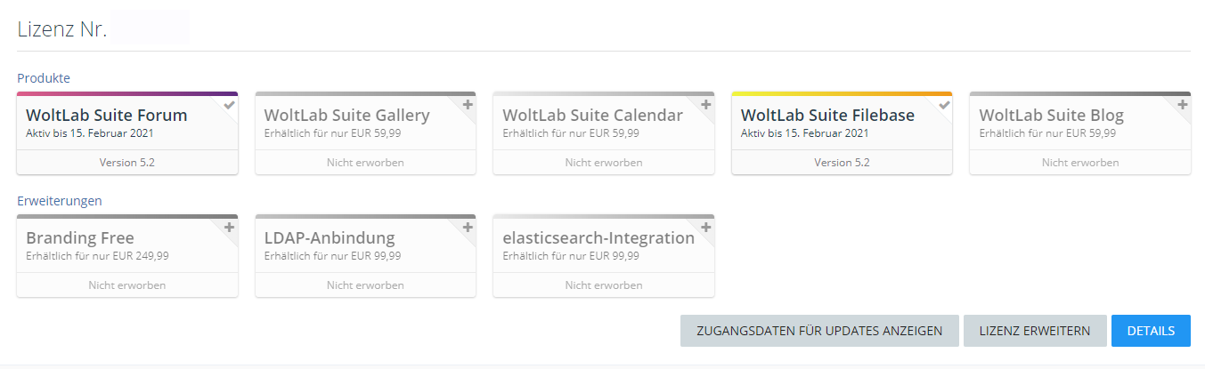 Ich biete hier meine Woltlab 5.2 Lizenzen mit Updatezugang bis 15.02.2021 an.