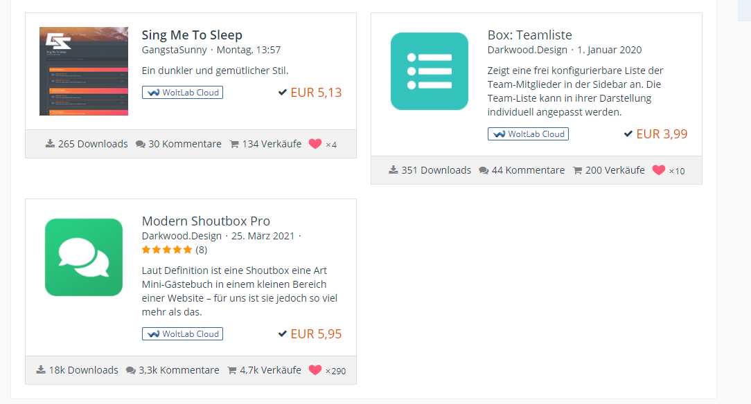 ich möchte meinen Account von WoltLab inklusive WoltLab Lizenz verkaufen. Enthalten sind ebenso 1 Stil und 2 Plugins gleicher Versionen.