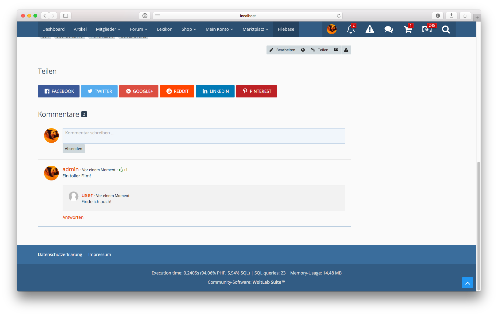- Reaktionen auf Kommentare in Einträgen verursachen u.U. einen Fehler
