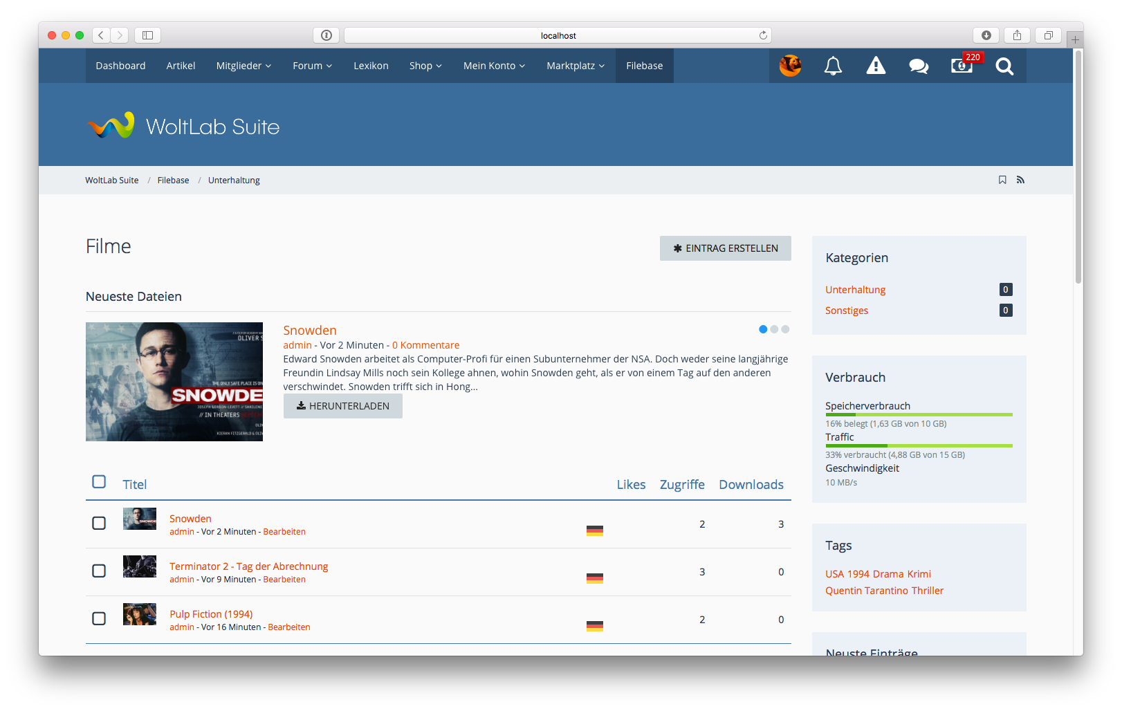 VieCode Filebase ist die richtige Erweiterung, wenn eine große Anzahl von Dateien in einer übersichtlichen Form präsentiert werden soll. Neben der modernen und dynamischen Oberfläche stehen die gewohnt ausführliche Moderation und Administration natürlich weiterhin zur Verfügung.
