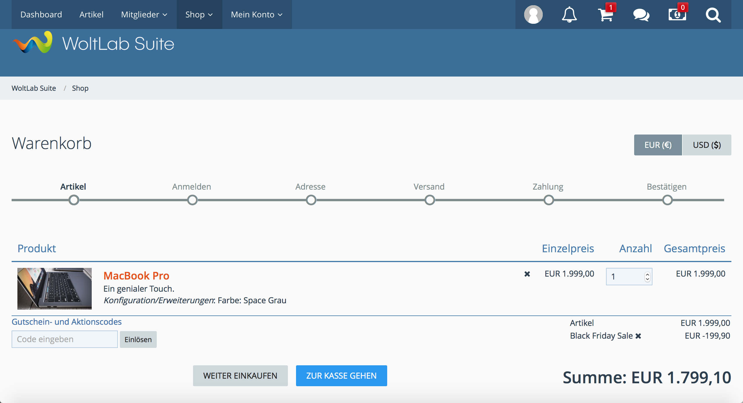 - Produkt-Code kann im Warenkorb nicht geladen werden