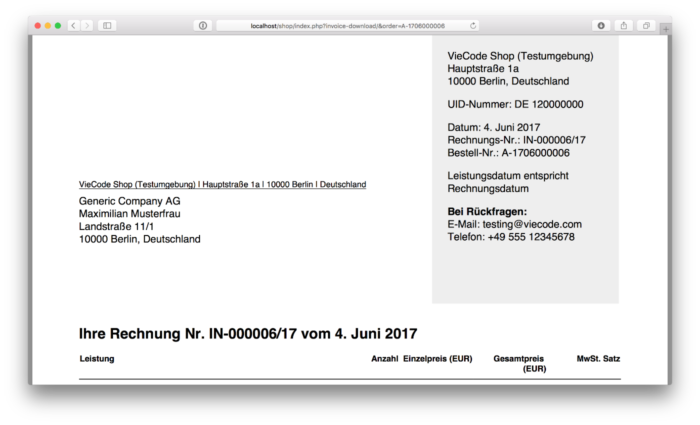 - "Rechnung erzeugen" im der Bestelldetailansicht gibt keine Rückmeldung