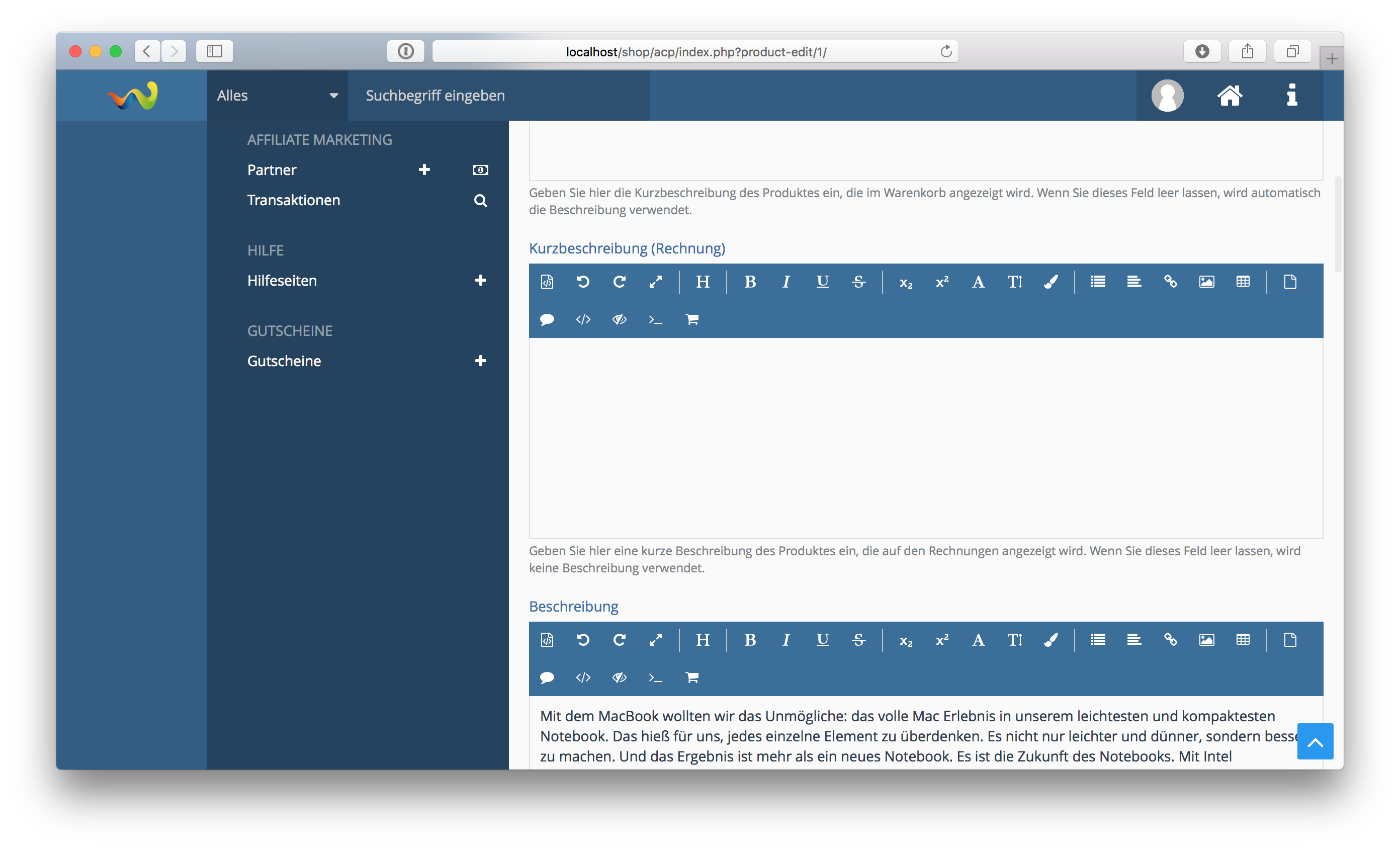 - Produkt bearbeiten kann u.U. nicht aufgerufen werden