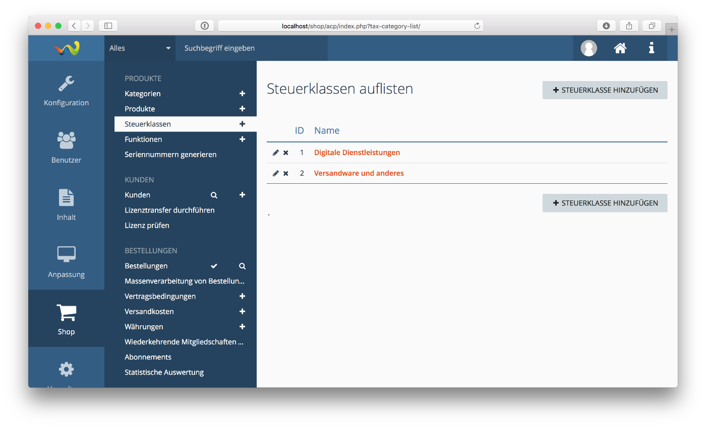 weiteren Paketes, in diesem Fall der Shop, auch modifiziert