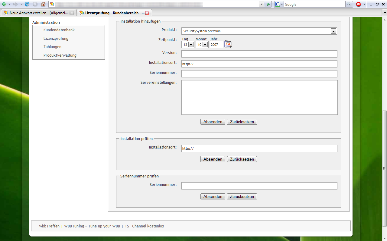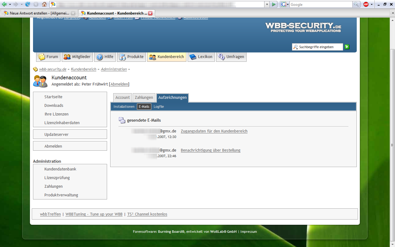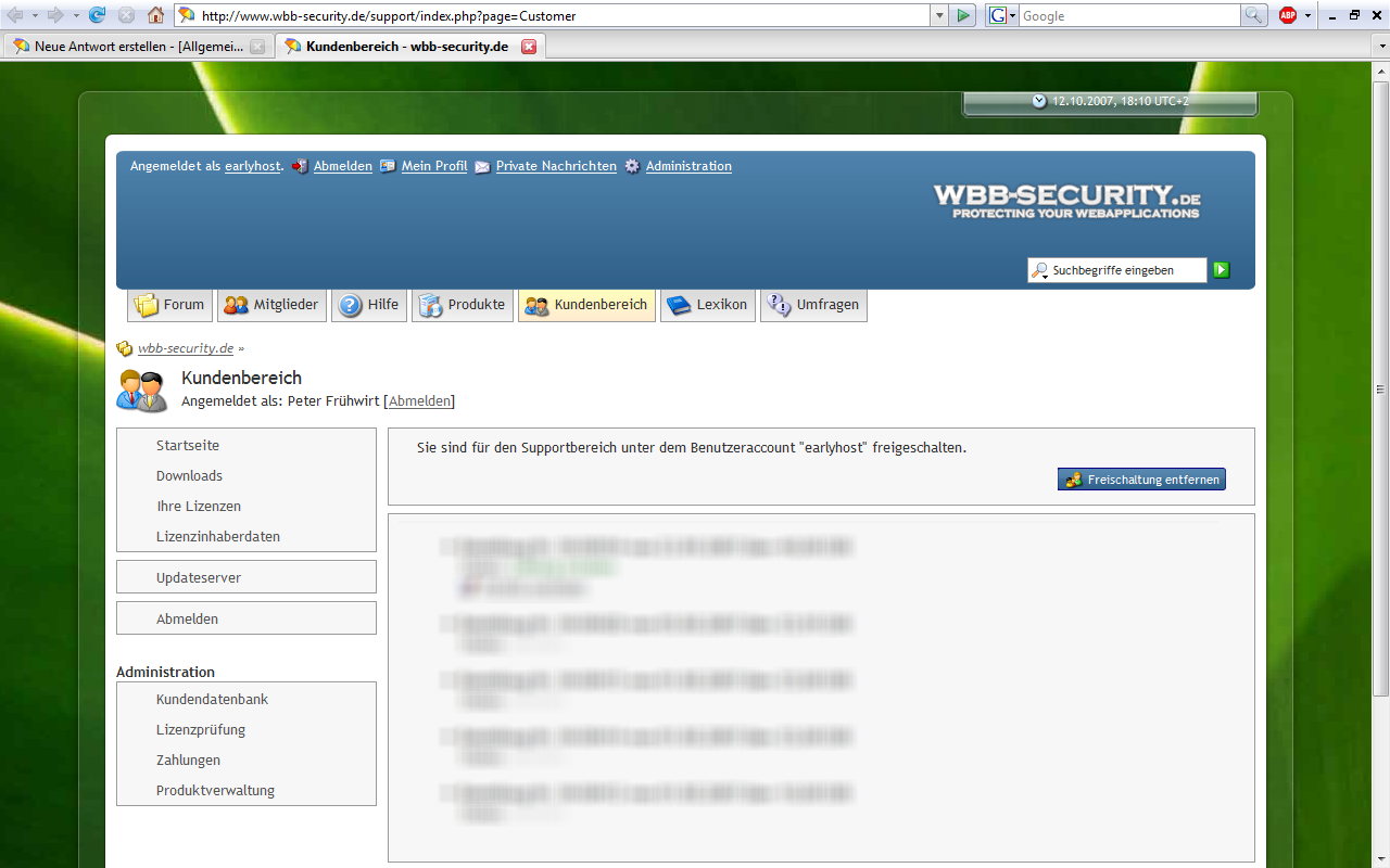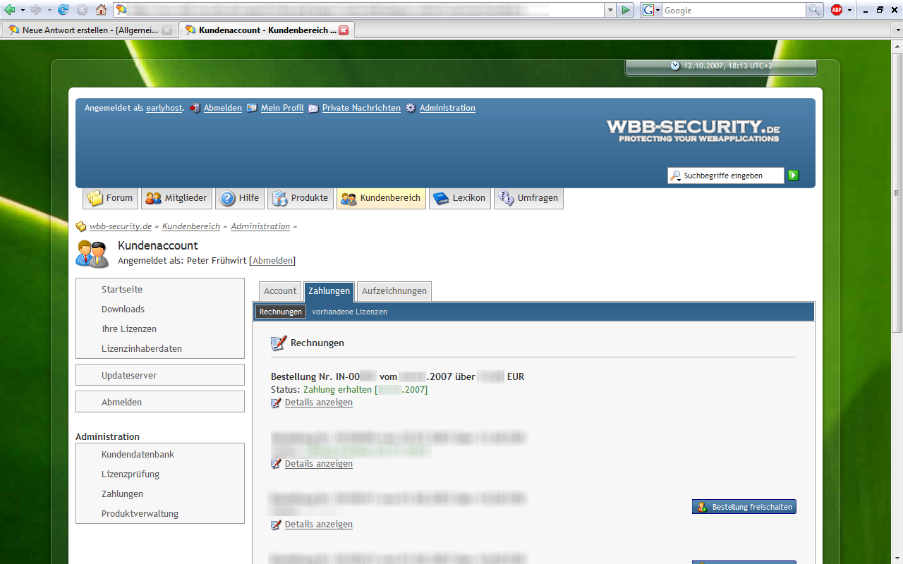 Screenshots zum Kundenbereich 4.0.0 Beta1