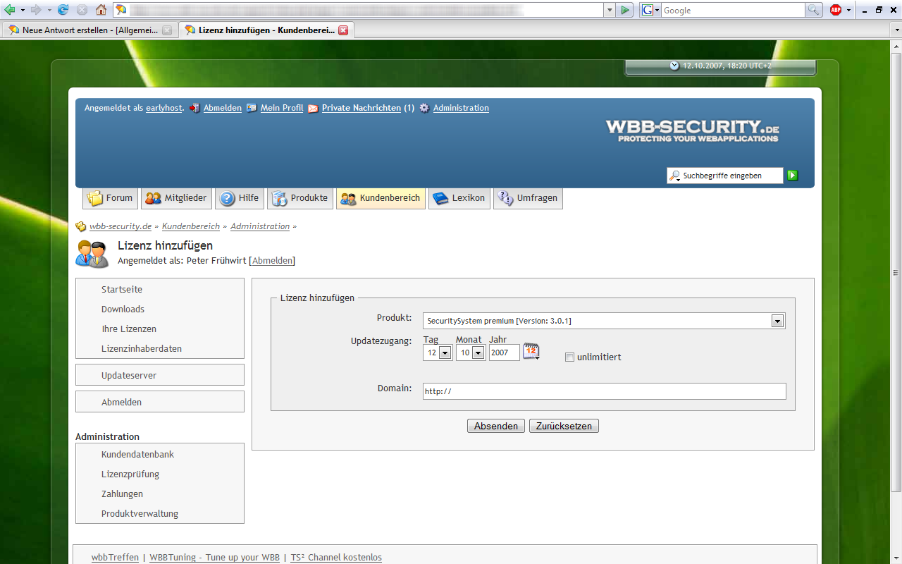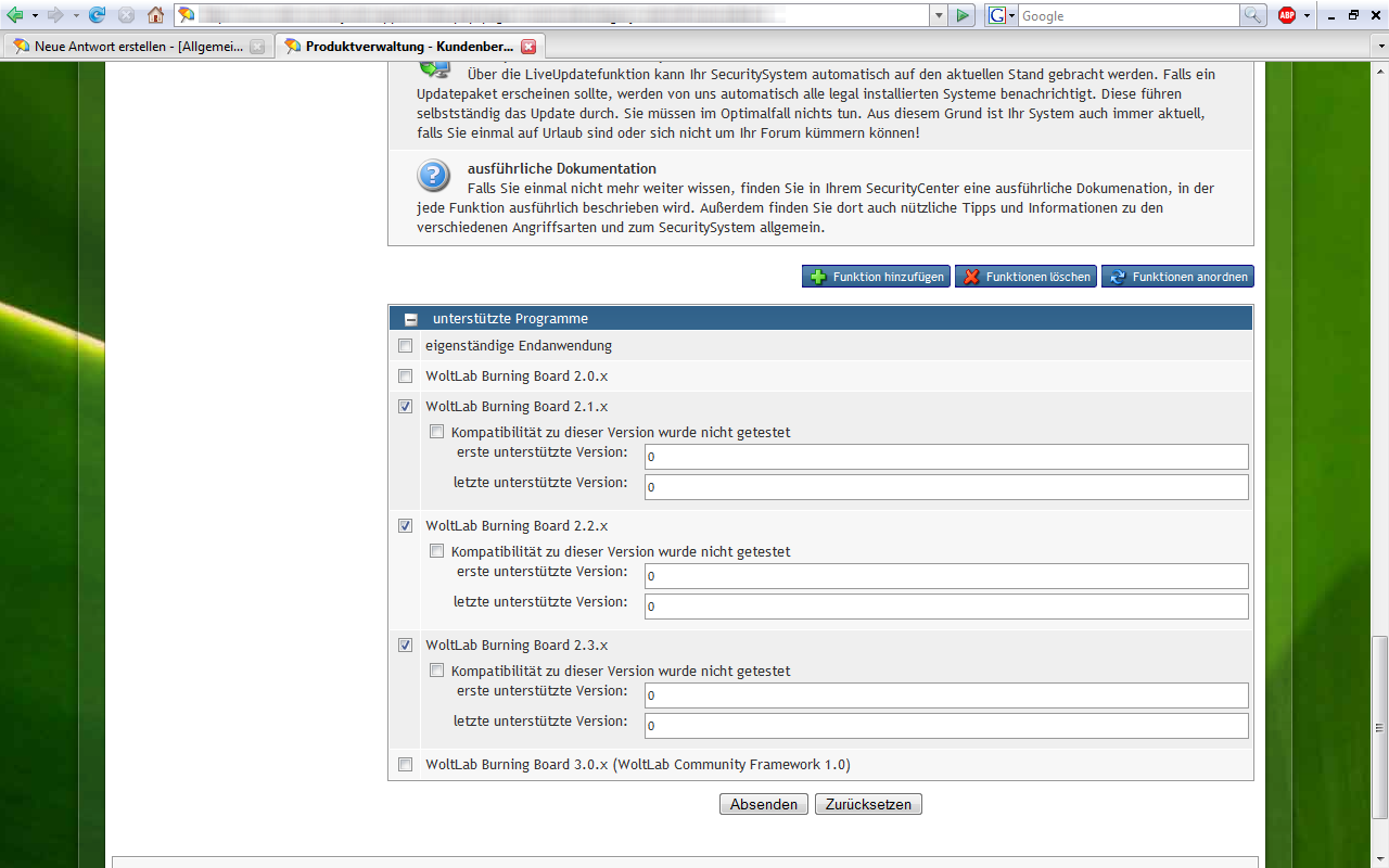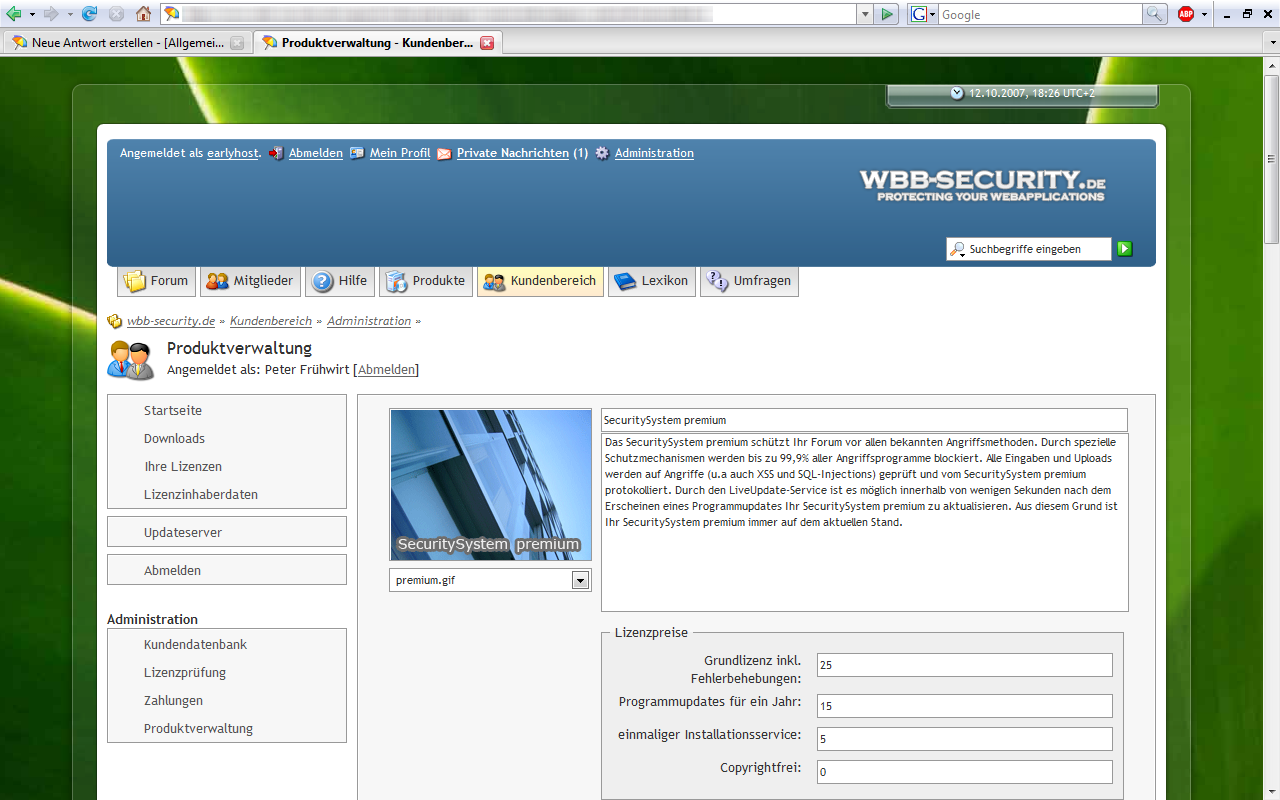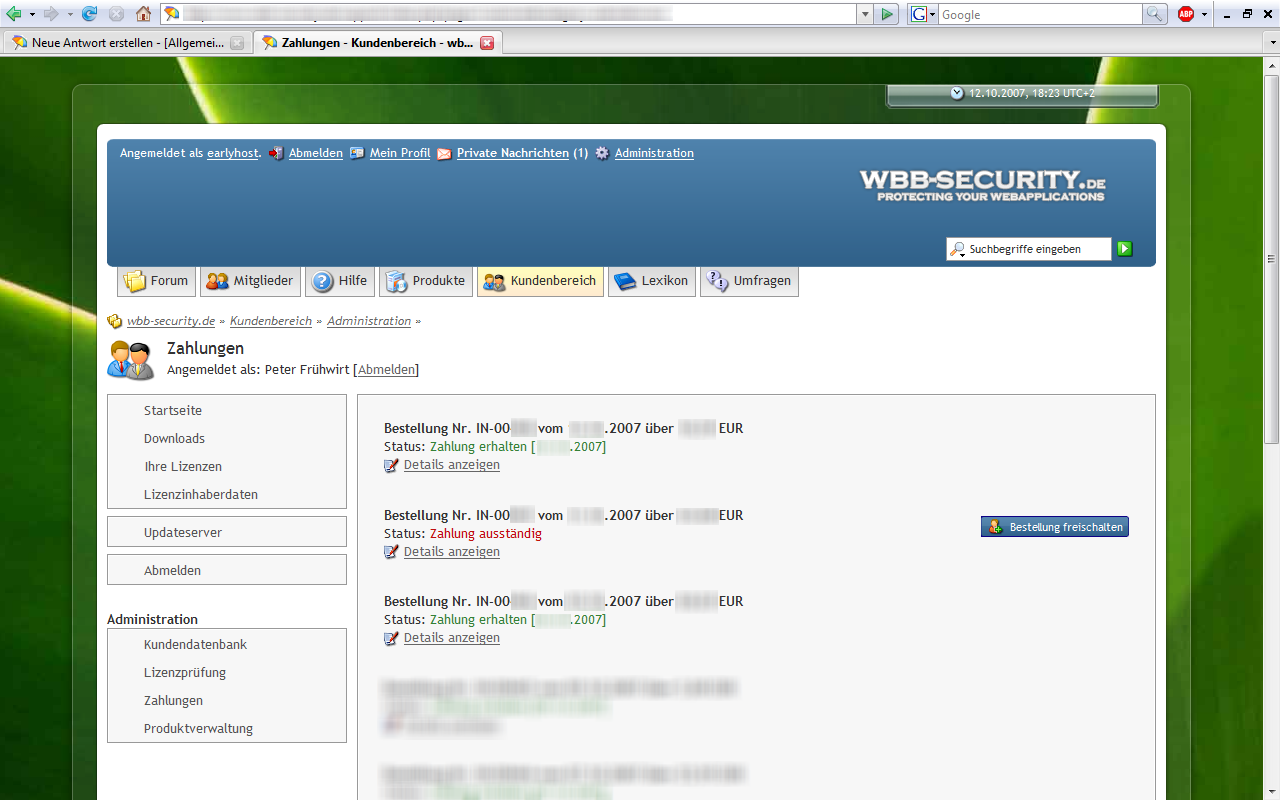 Screenshots zum Kundenbereich 4.0.0 Beta1