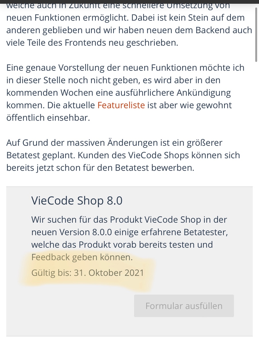 The betatest is only available for customers who have already purchased the a previous version of the VieCode Shop.
