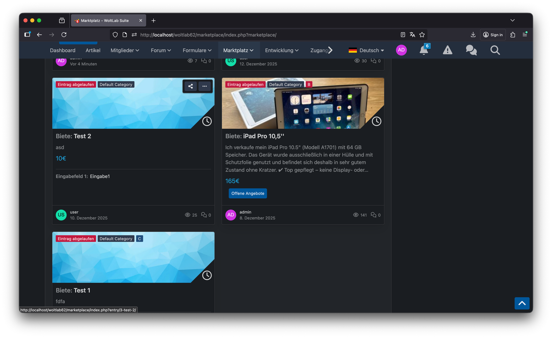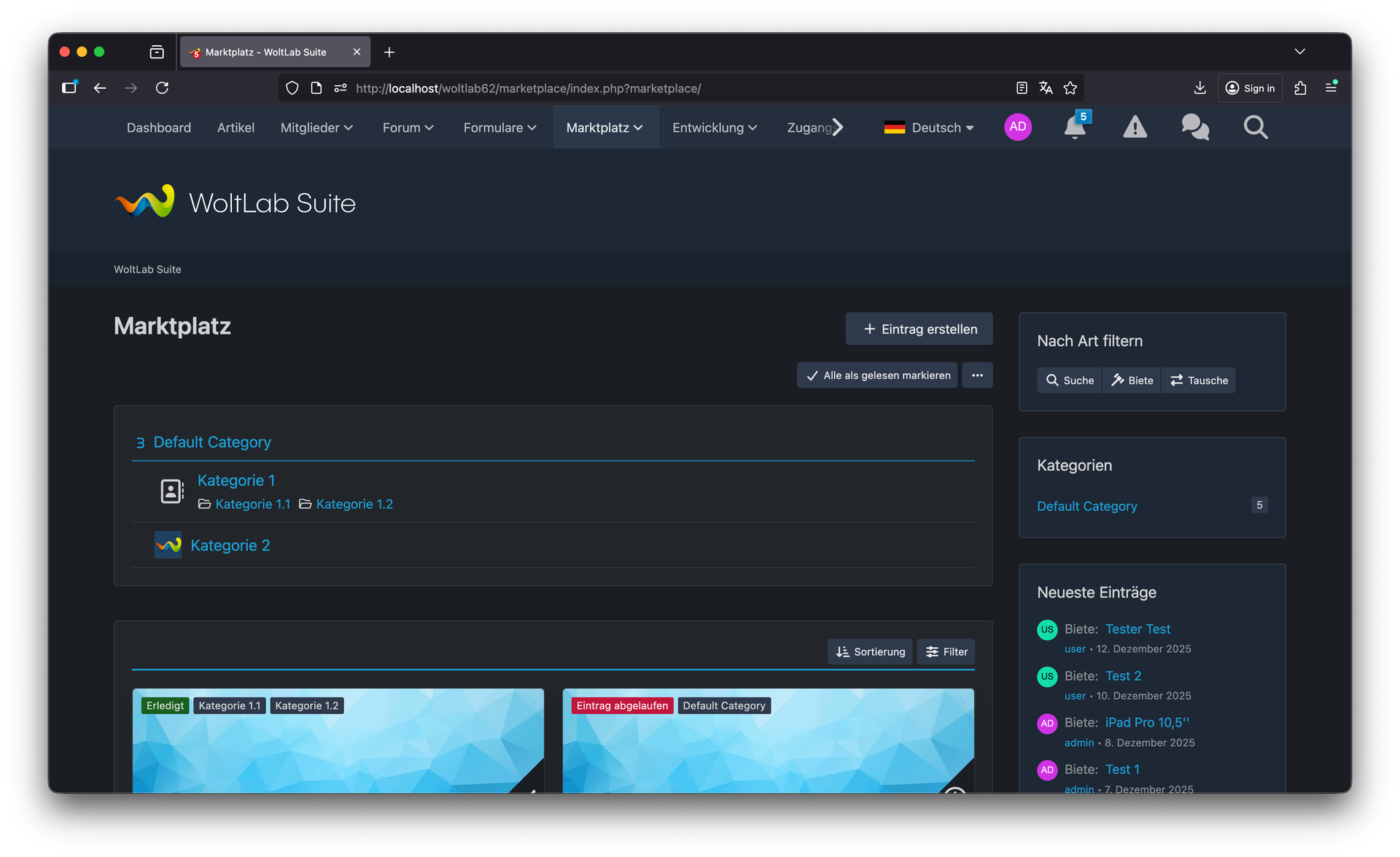 Der neue Suchfilter "Alle / erledigt / nicht erledigt" ermöglicht es, gezielt nach aktiven oder bereits abgeschlossenen Angeboten zu suchen. Dies verbessert die Übersichtlichkeit erheblich, besonders bei großen Marktplätzen mit vielen Einträgen. Außerdem wurde Biete/Suche/Tausche in die erweiterte Suche integriert, sodass Nutzer präziser nach der gewünschten Angebotsart filtern können. Die Suche wird dadurch deutlich effizienter und zielgerichteter.
