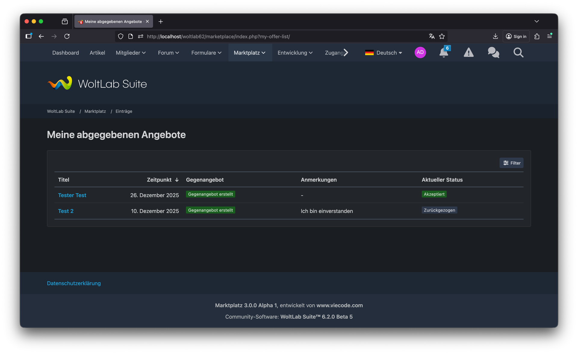 Der Marktplatz 6.2 wird zeitnah nach dem finalen Release von WoltLab Suite 6.2 veröffentlicht. Somit können Sie sicher sein, dass die Anwendung optimal auf die neueste WoltLab Suite-Version abgestimmt ist und alle Kompatibilitätsanforderungen erfüllt. Bestehende Lizenzkunden werden selbstverständlich rechtzeitig über die Verfügbarkeit und den Download informiert.