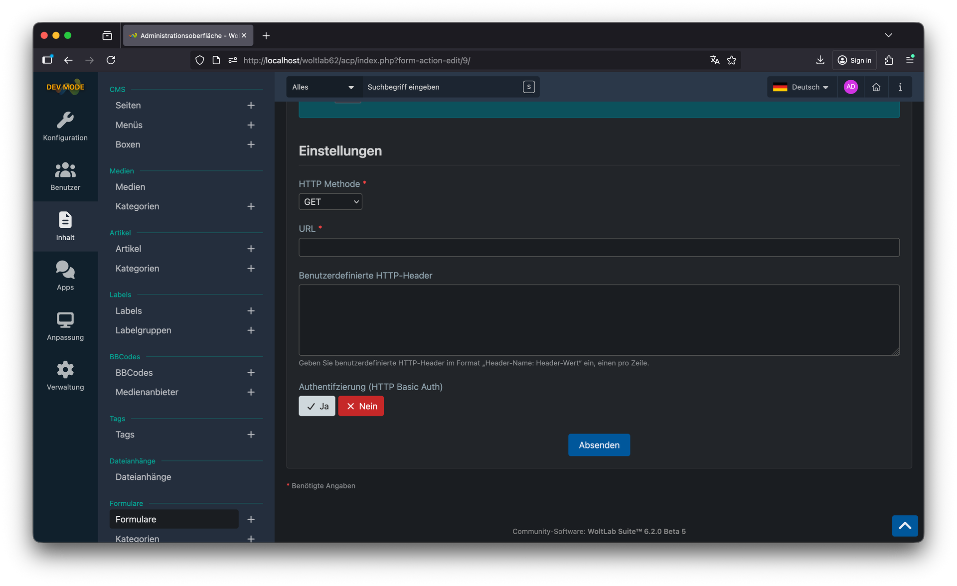 Die Unterstützung von Mehrsprachigkeit in E-Mail-Aktionen ermöglicht es, automatisierte E-Mails in der bevorzugten Sprache des Empfängers zu versenden – ideal für internationale Communities und mehrsprachige Websites. Die neue Aktion "Benutzerkonto erstellen" ermöglicht die automatische Registrierung von Nutzern basierend auf Formulareingaben. Ideal für Registrierungsformulare, Mitgliederanträge oder automatisierte Onboarding-Prozesse. Bei der HTTP REST-Aktion können Sie nun individuelle HTTP-Header setzen, was die Integration mit externen APIs und Diensten erheblich flexibler macht. Authentifizierung, Content-Type und andere Header lassen sich präzise konfigurieren.