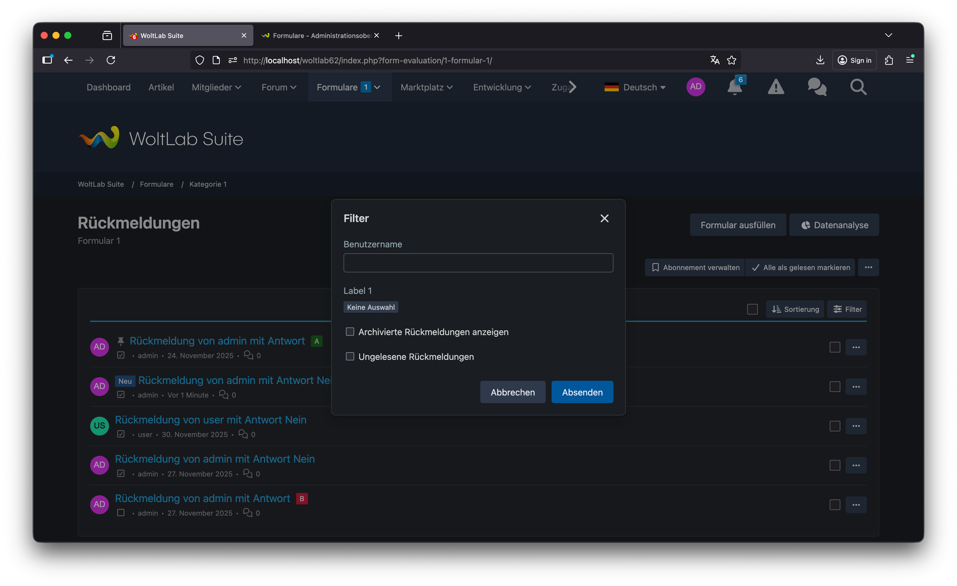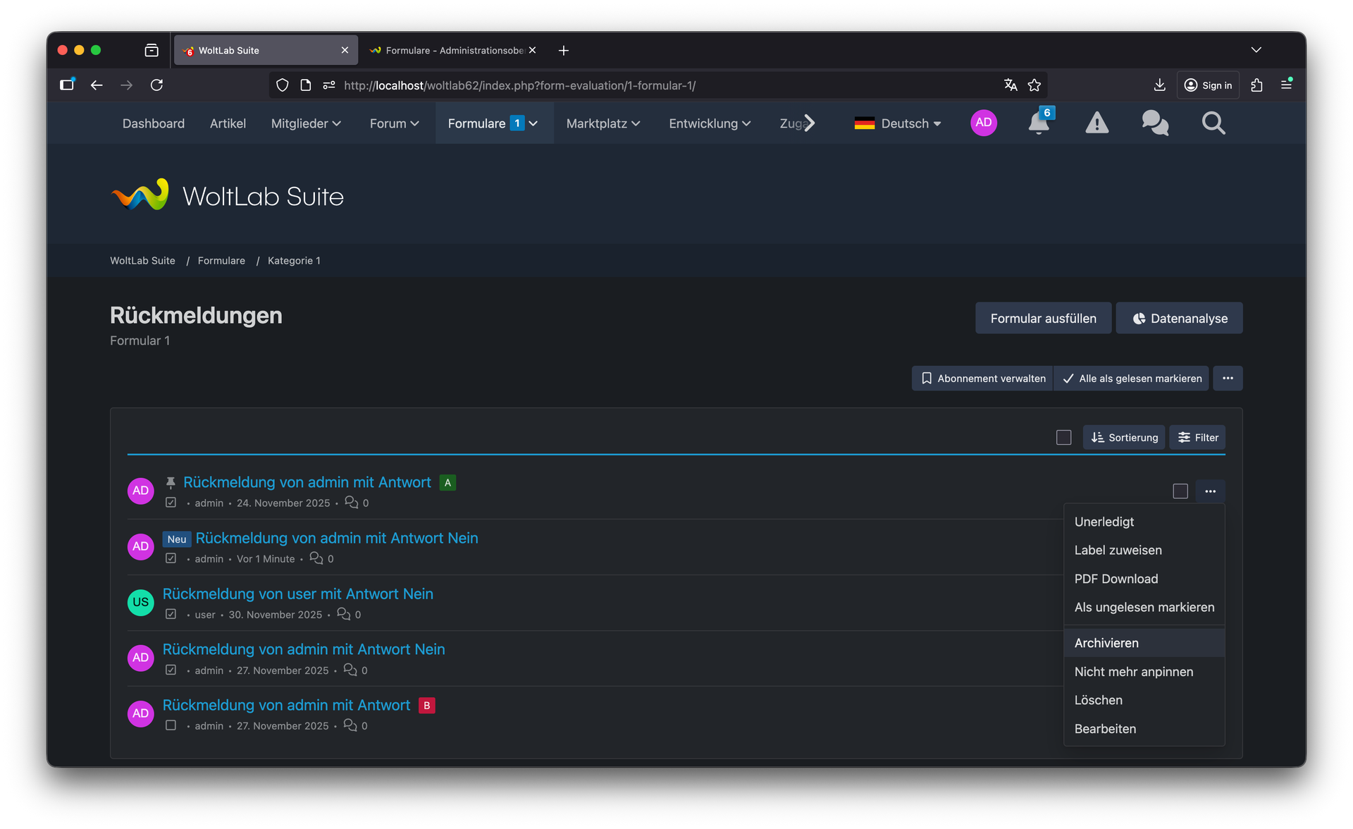 Die neue Formular-Archivierungsfunktion ermöglicht es, nicht mehr aktive Formulare auszulagern, ohne sie zu löschen. Behalten Sie Zugriff auf historische Daten, während die Hauptübersicht übersichtlich bleibt. Das Archiv für Rückmeldungen bietet die Möglichkeit, abgeschlossene oder alte Einsendungen zu archivieren. Reduzieren Sie die Datenmenge in der aktiven Ansicht, ohne Informationen zu verlieren. Die Funktion zum Anpinnen von Rückmeldungen hebt wichtige oder dringende Einsendungen hervor, sodass sie immer oben in der Liste erscheinen – niemals übersehen werden wichtige Nachrichten.![]()