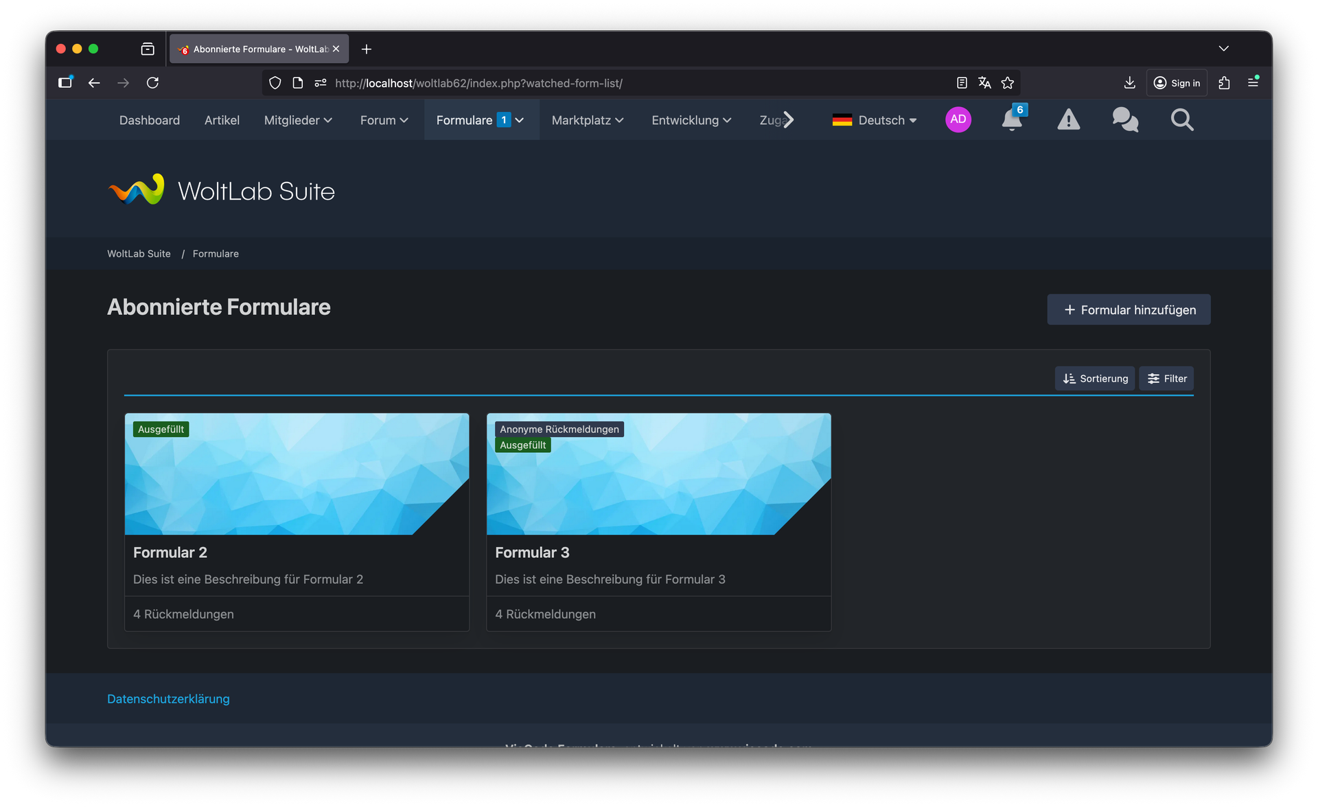 Die Liste abonnierter Formulare gibt Nutzern einen zentralen Überblick über alle Formulare, für die sie Benachrichtigungen erhalten. Verwaltung von Interessen wird einfach und transparent.