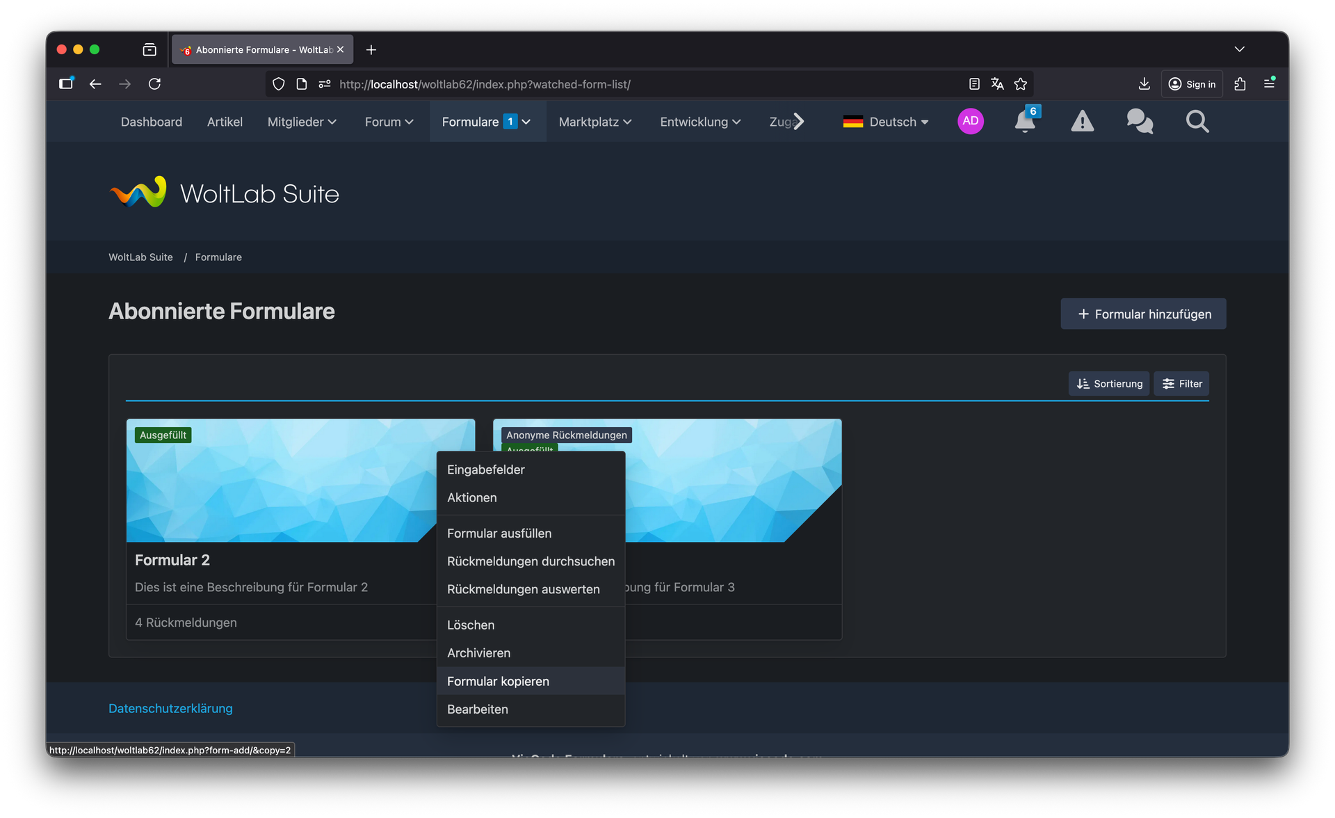 Das Kopieren von Formularen über das Frontend ermöglicht es berechtigten Nutzern, bestehende Formulare als Vorlage zu nutzen und anzupassen – ideal für wiederkehrende Strukturen oder Variationen eines Basis-Formulars.