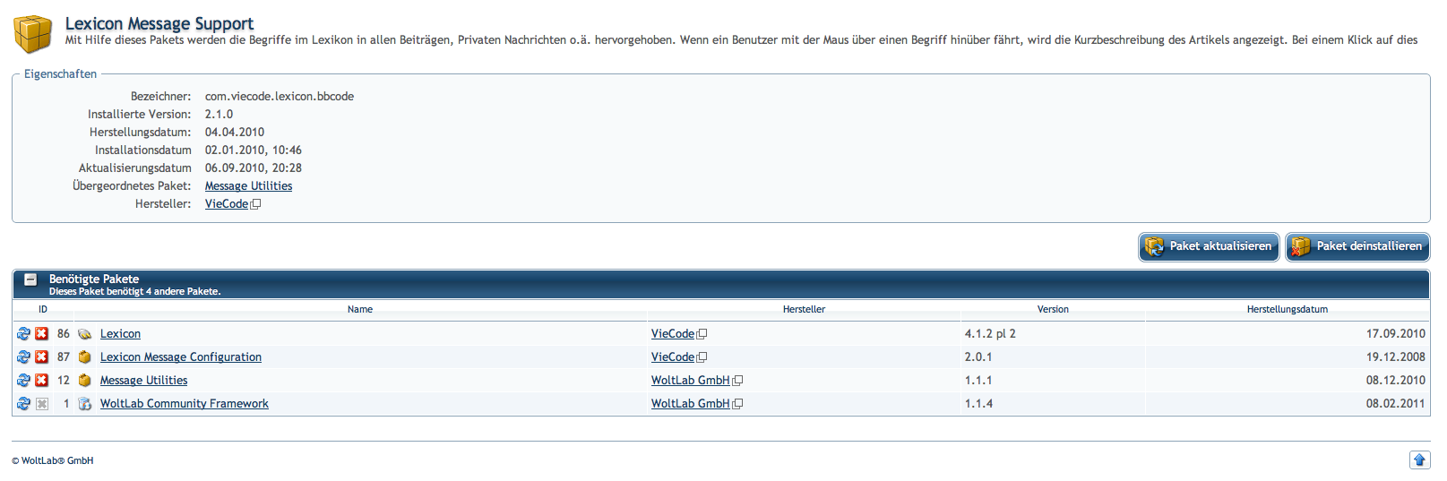 Das Paket kannst du dir u.a über den paketserver herunterladen: http://update.viecode.com/index.php?pack….lexicon.update (Zugangsdaten: https://www.viecode.com/support/index.php?page=ServerAccount)