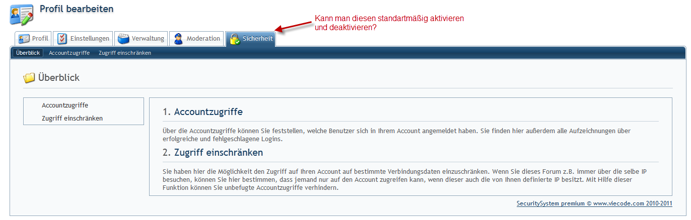 Die Frage: In den Profilen der User ist durch das Installieren des Plugins der Reiter "Sicherheit" entstanden. Kann ich diesen für bestimmte Benutzergruppen, wie z.B. entfernen? ![]()