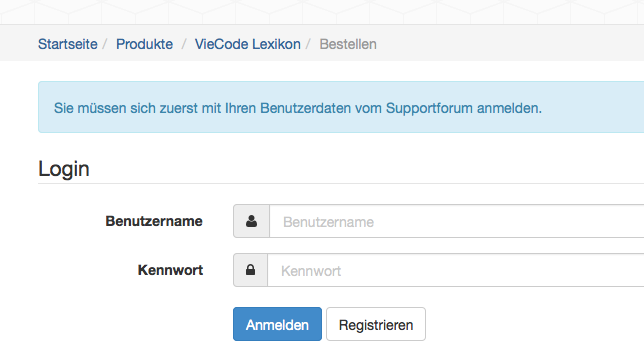 If you don't have the upgrade already in your basket (https://www.viecode.com/support/products/basket.html) you have to order the upgrade first. To do so you have to use our new product page: https://www.viecode.com/products/lexicon/order First you have to login in with your credentials from here.