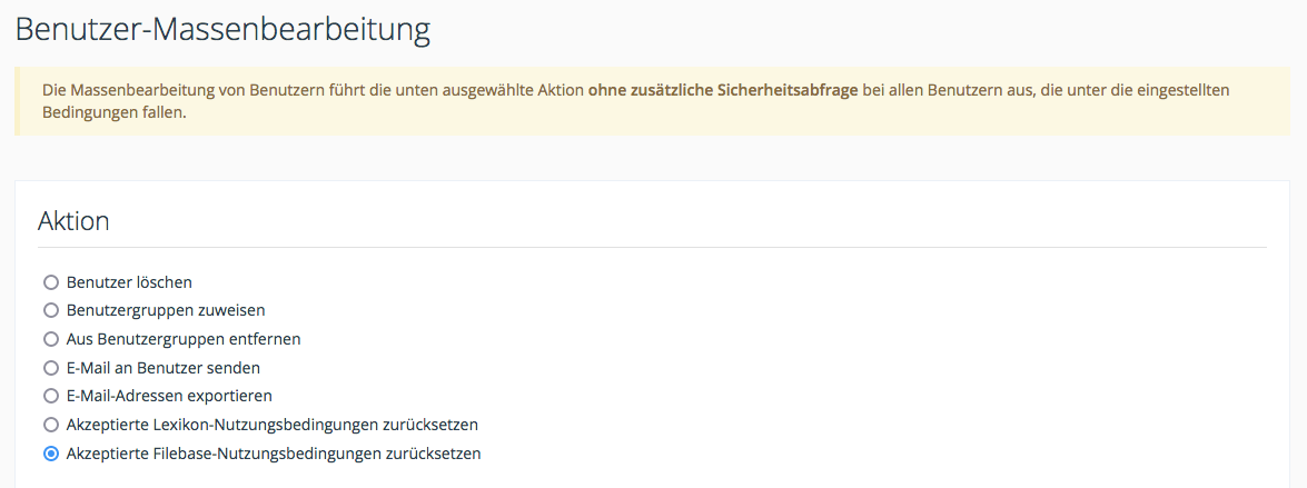 Die Nutzungsbedingungen können nun über die Benutzer-Massenbearbeitung zurückgesetzt werden.