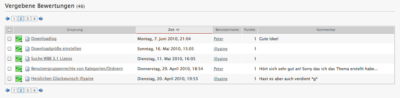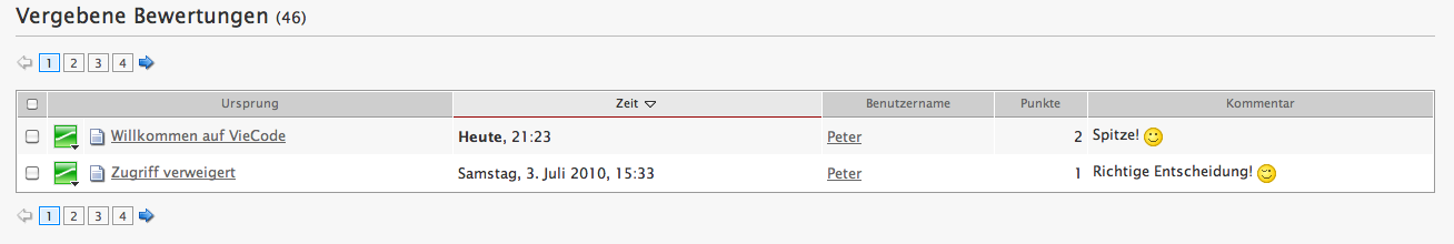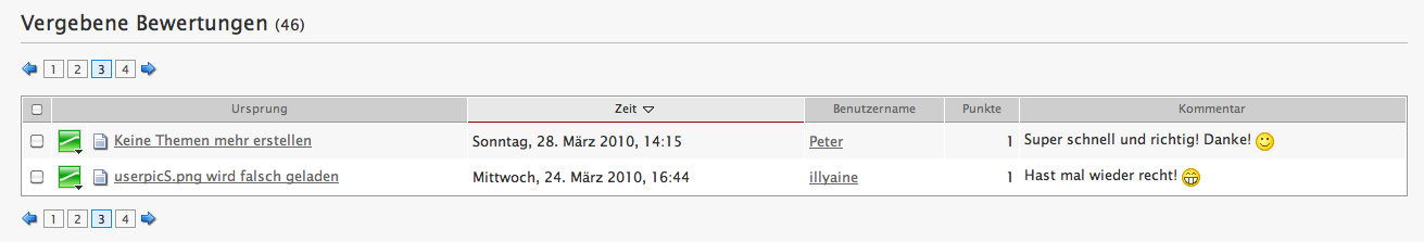 Wenn ich (auf meinem Profil) auf Bewertungen gehe und dann auf "Vergebene Bewertungen", bekomme ich erstmal 2 Bewertungen angezeigt (allerdings noch 4 weitere Seiten).