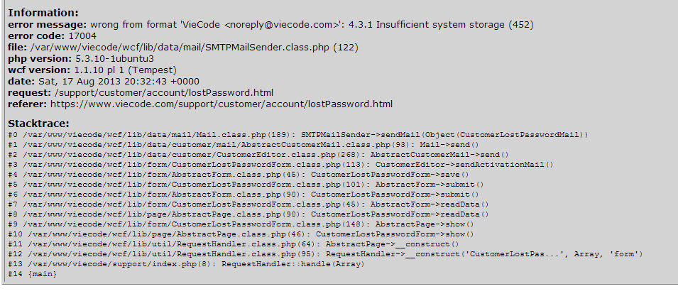 grade wollte ich mir die Kundendaten erneut anfordern, aber es kam nach dem absenden ein SQL Error, der bei jedem Versuch kam.