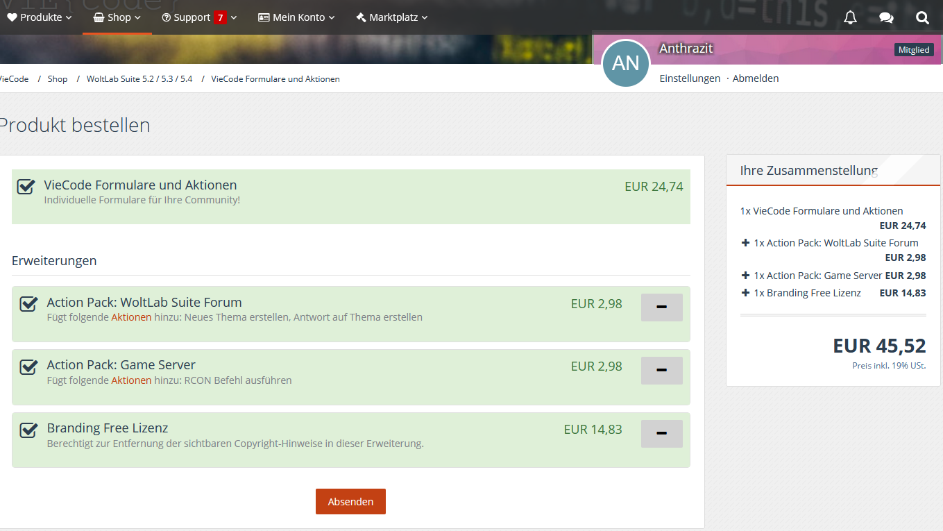 Das Paket https://www.viecode.com/shop/product/3…e-und-aktionen/ komplett mit den Erweiterungen kaufen - per Überweisung, da ich keine KK habe